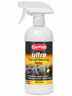 CarPlan Ultra Cockpit Dressing Spray is an easy-to-use refreshing lotion for all plastic and PVC parts inside and also outside the car. It leaves an elegant satin finish and is especially recommended for cleaning cockpits in modern cars. The perfect composition of active compounds ensures quick and thorough cleaning, leaving a pleasant lemon fragrance.